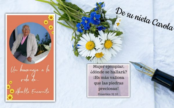 PRECIOSA *E* smerada *N* uestra guía fuiste, mejor que *C* ualquier piedra preciosa *A* tenta y diligente, de *R* odillas ante Dios orando por *N* osotros tus retoños *I* nigualable *T* emerosa de Dios *A* mor puro y sincero derramaste. 😘💓